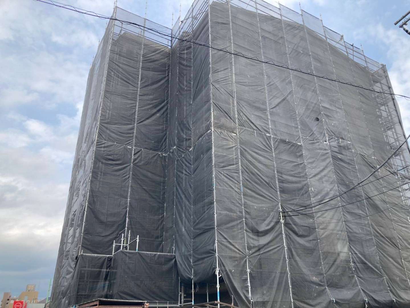 弊社では、居住者様の安全動線やプライバシーの確保、電線防護管の設置といった対策を徹底。後工程の全職方が安全かつスムーズに作業できるよう、高品質な足場環境をご提供しました。