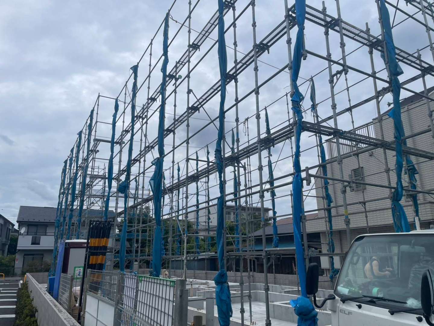 【練馬区の施工事例】新築工事現場における先行足場組立